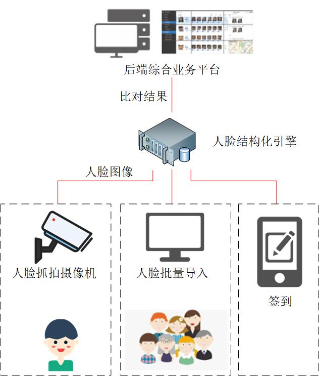 在智慧(huì)商業園區布(bù)設的人臉識別係統,由人臉識別門禁子係統、人臉識別訪(fǎng)客子係(xì)統、會議簽(qiān)到子係統、人臉識別布控子係統、人臉比對一體化引擎、中心管理平台等組成,可達到以下應用效果。